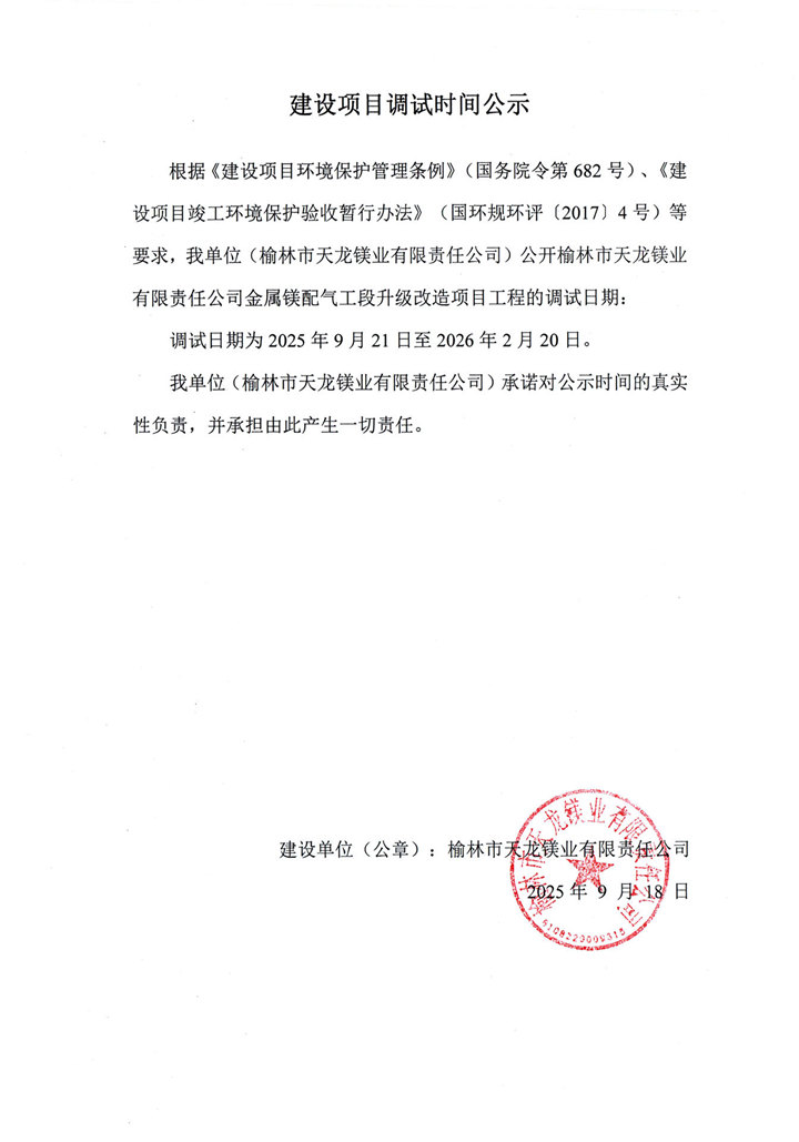天龍鎂業(yè)金屬鎂2.25萬噸、蘭炭50萬噸驗(yàn)收公示